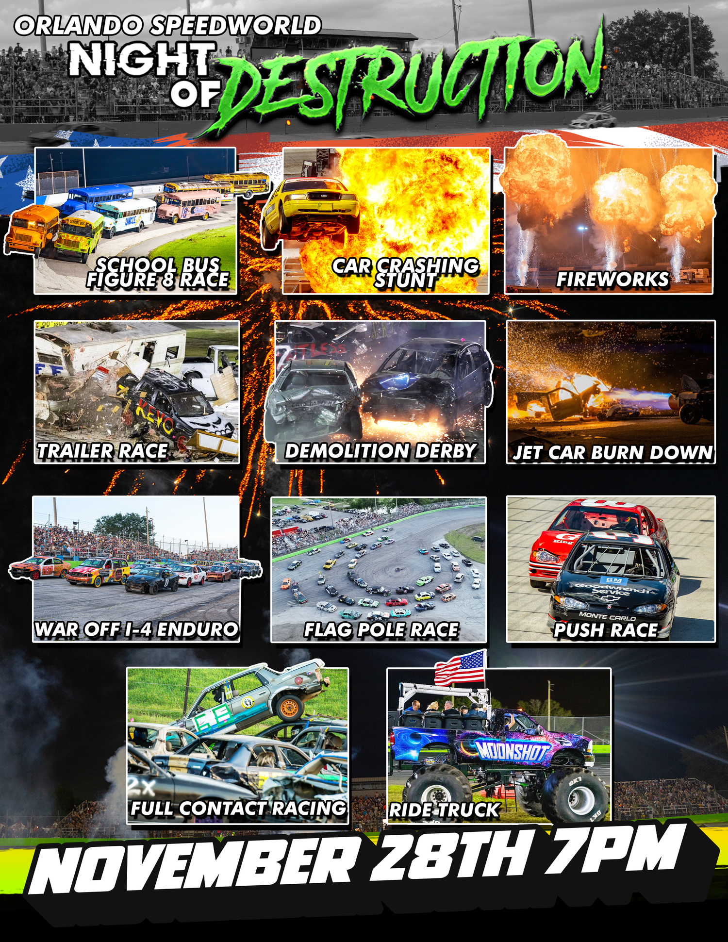 - Bring Cash: Using cash for tickets and concessions will help reduce wait times if you have not purchased tickets in advance at TourOfDestruction.com.